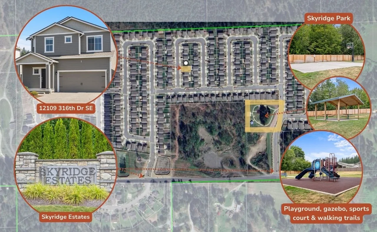 This home also includes thoughtful finishes and upgrades throughout, such as white two-panel doors with craftsman trim, vinyl plank flooring, ceiling fans, and recessed LED lighting. All appliances, including the kitchen suite and washer and dryer, are included with the home! Stay comfortable year round with a high-efficiency heat pump with forced air heating and cooling! You’ll love living in Skyridge Estates in Sultan.